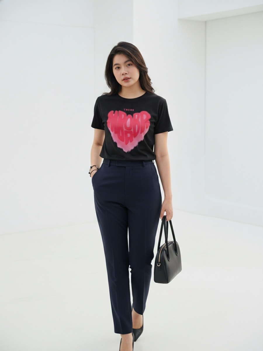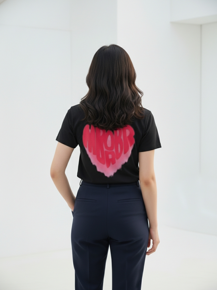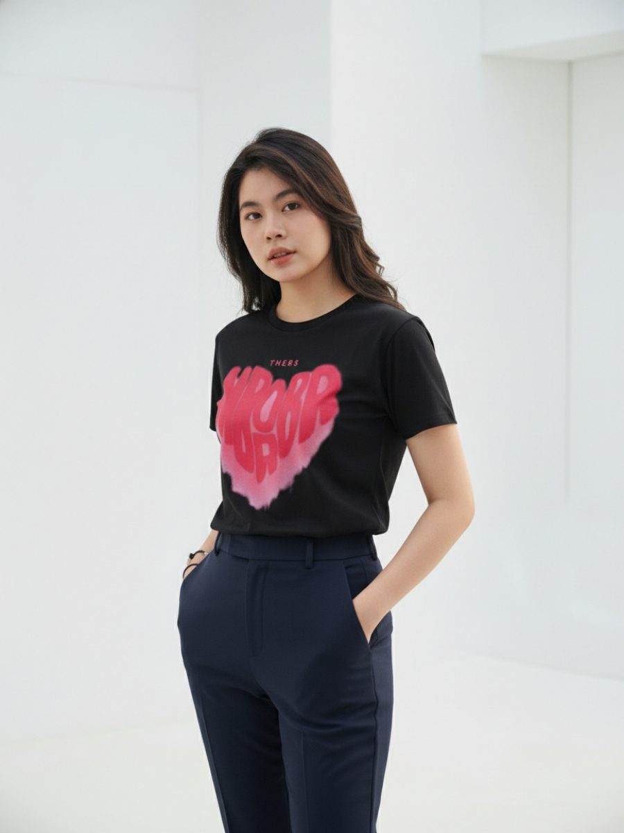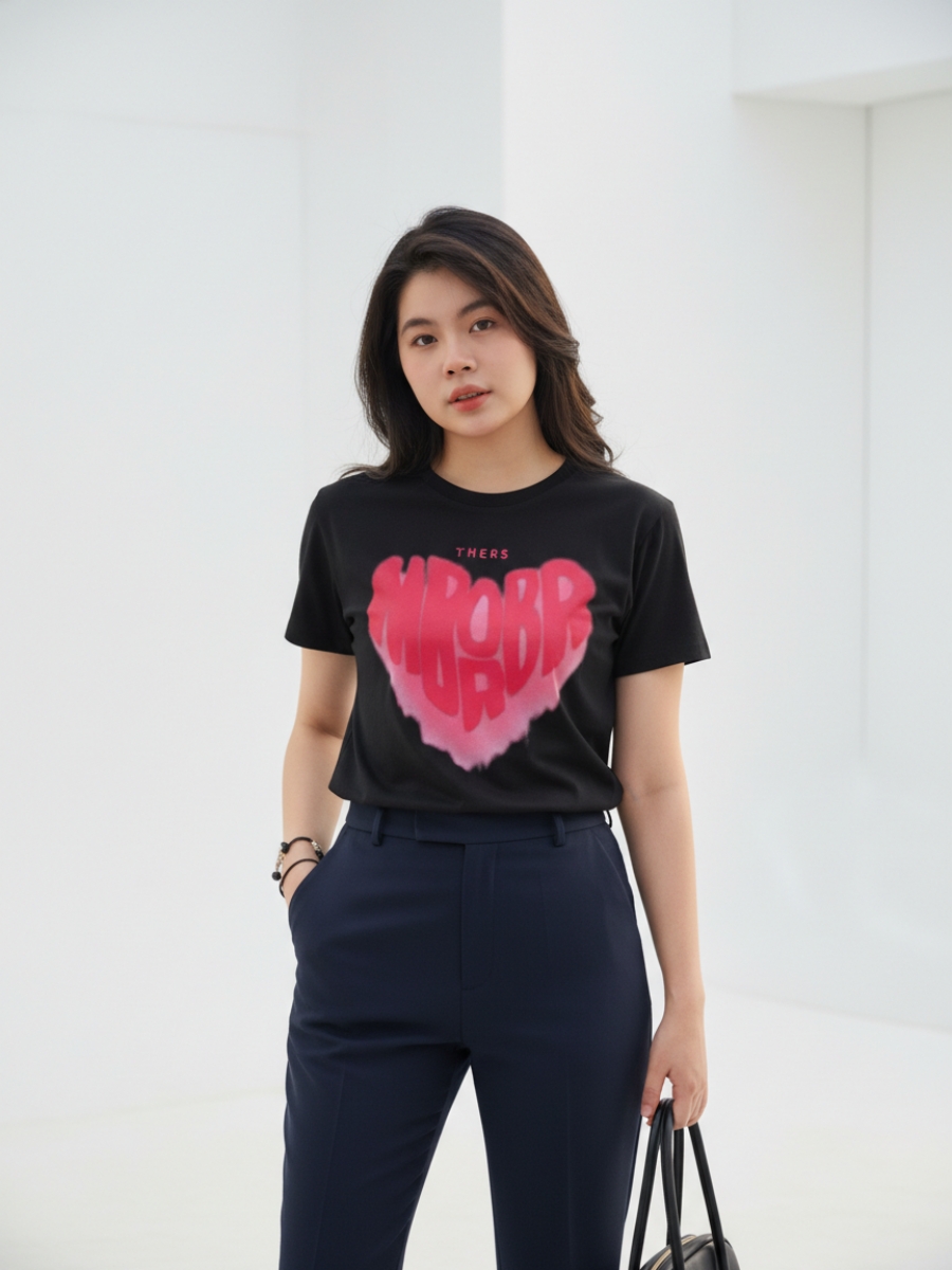 Màu đen huyền bí giúp áo dễ dàng phối với các phụ kiện khác, tạo nên phong cách cá tính nhưng vẫn sang trọng. Họa tiết trái tim được in sắc nét, có ý nghĩa đặc biệt trong việc thể hiện sự gắn kết giữa các thành viên trong nhóm.