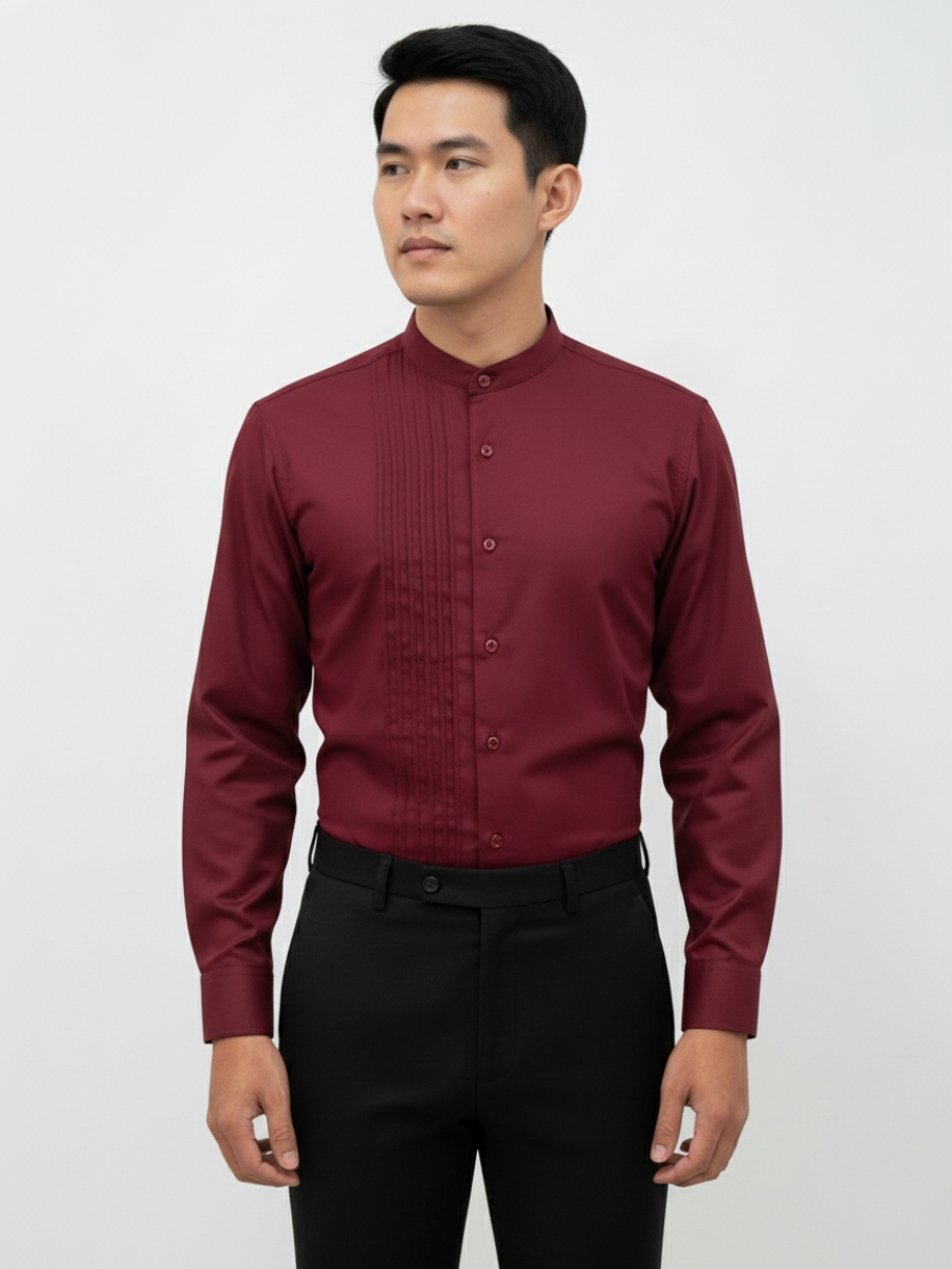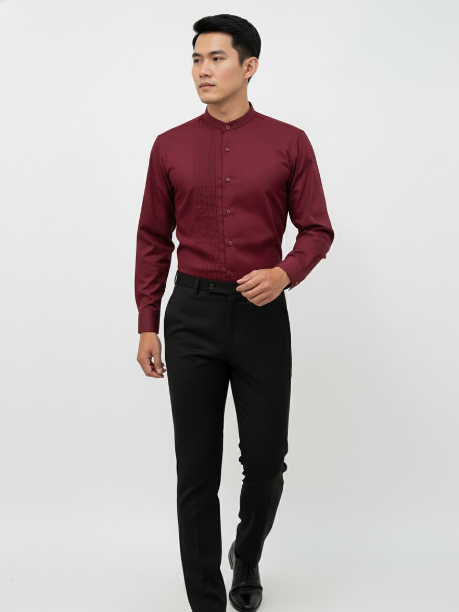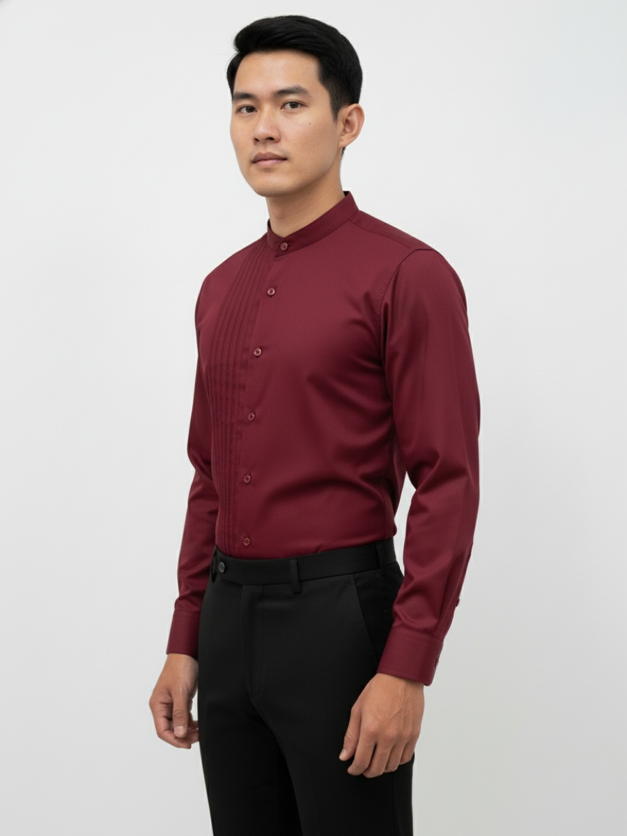 Thiết kế cổ áo đứng của áo sơ mi kiểu xếp ly mang lại vẻ lịch lãm và tinh tế cho người mặc. Cổ áo được may chắc chắn, giữ form tốt và dễ phối hợp với các loại trang phục khác.