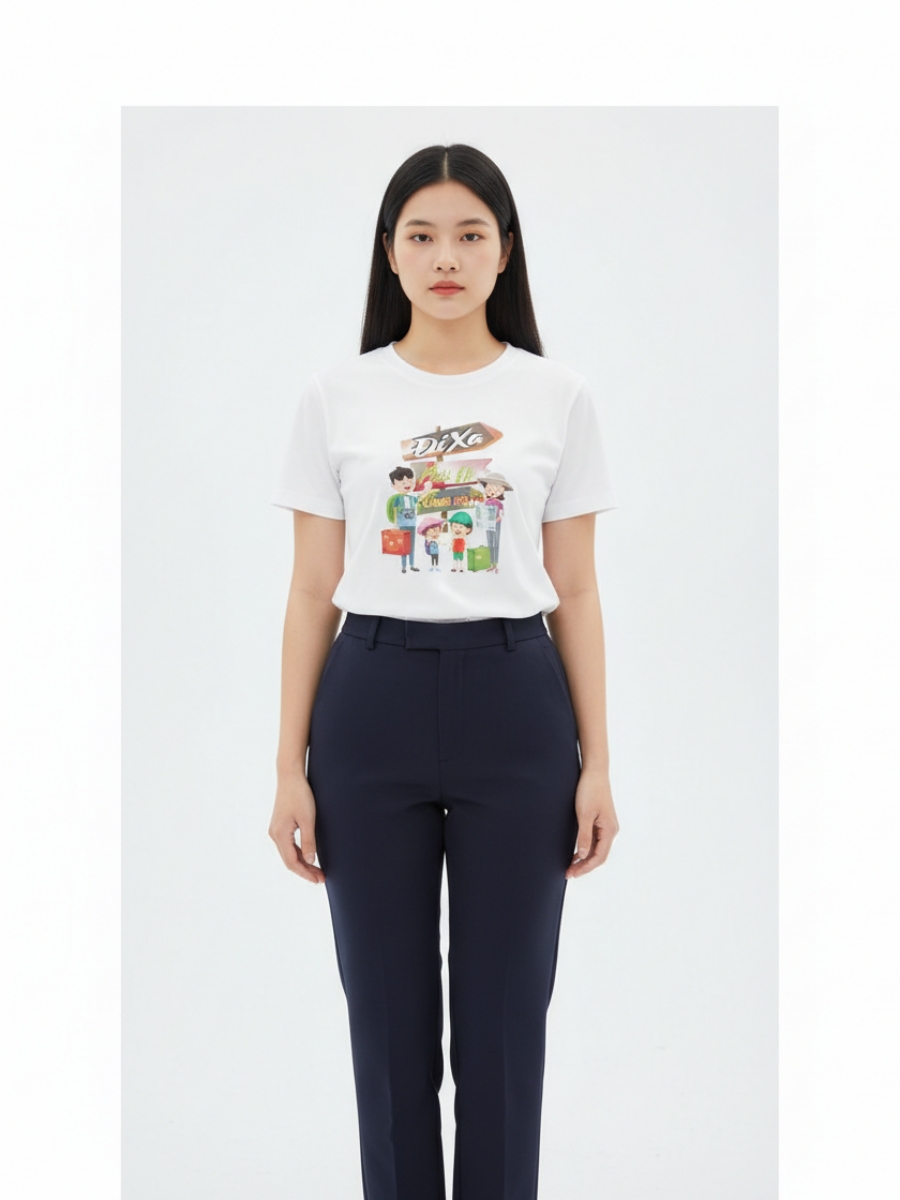 Áo có màu trắng tinh khôi, dễ dàng làm nổi bật hình in màu sắc ở mặt trước. Hình in trên áo là hình ảnh một gia đình đang tham gia hoạt động team building, mang lại cảm giác vui tươi và gắn kết. Hình in được thực hiện bằng công nghệ in hiện đại, đảm bảo không bị phai màu hay bong tróc sau nhiều lần giặt.