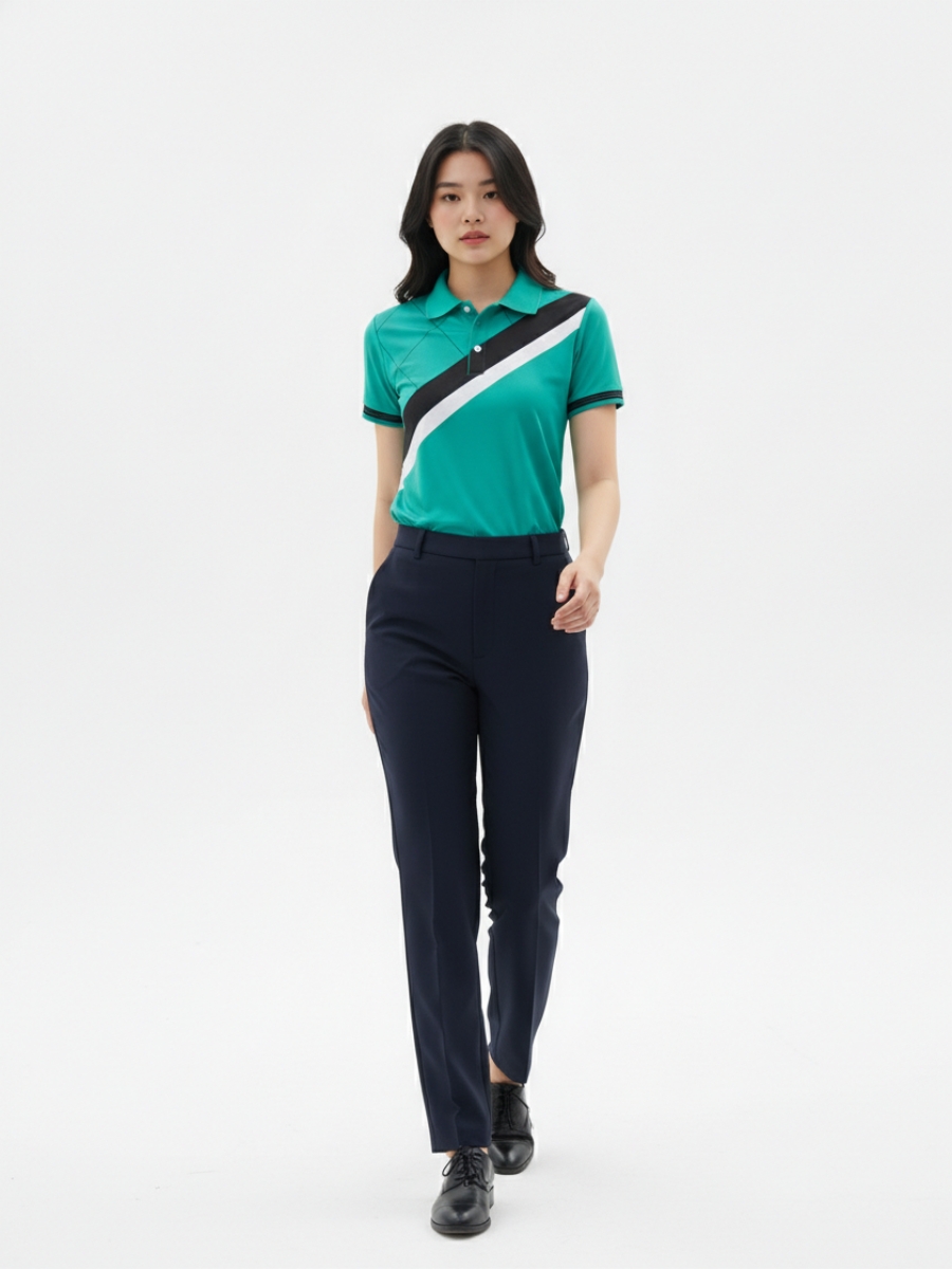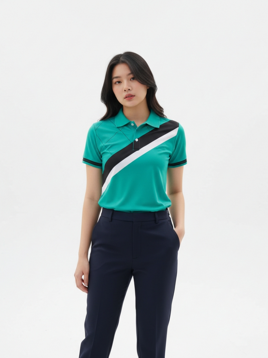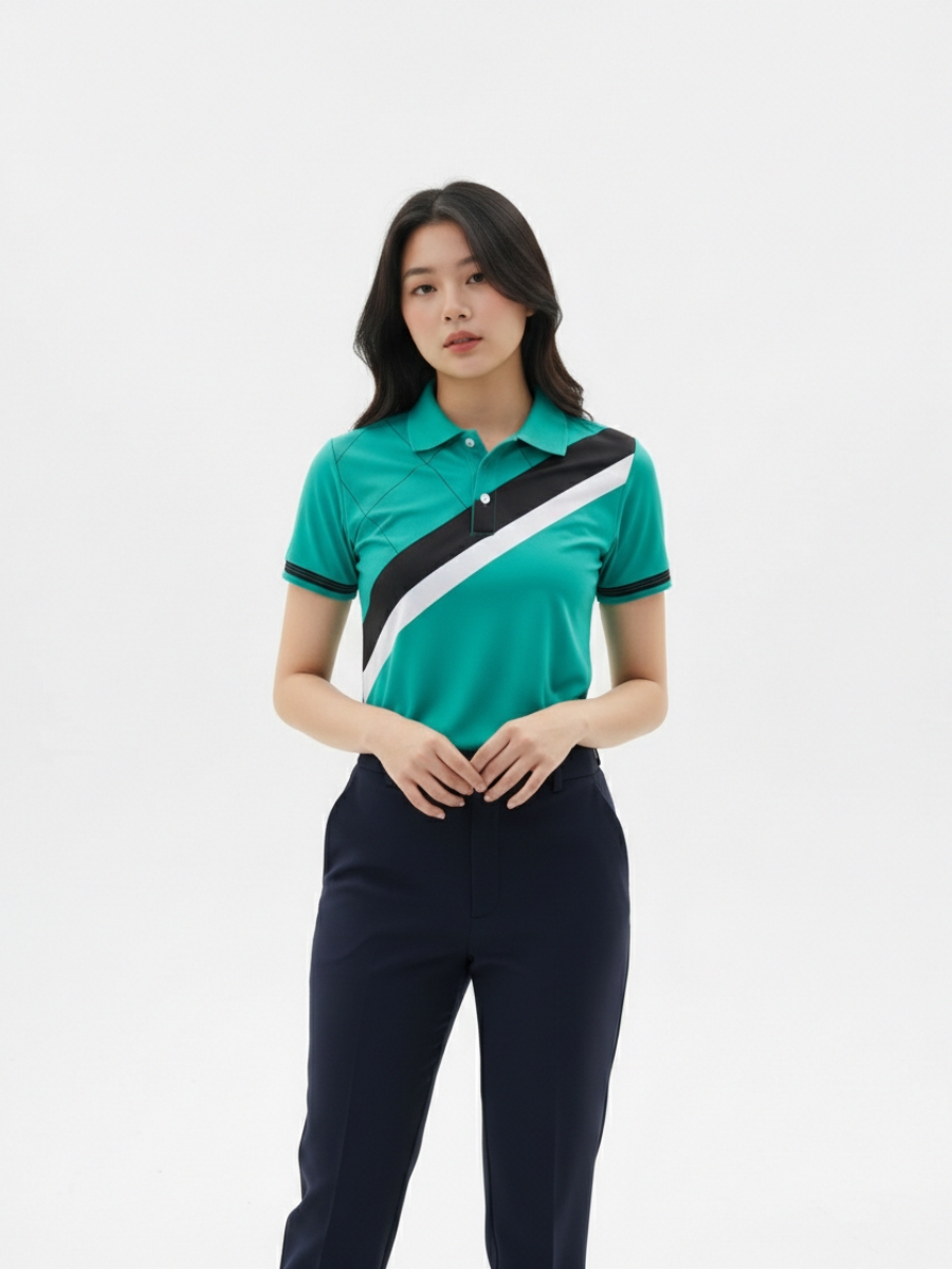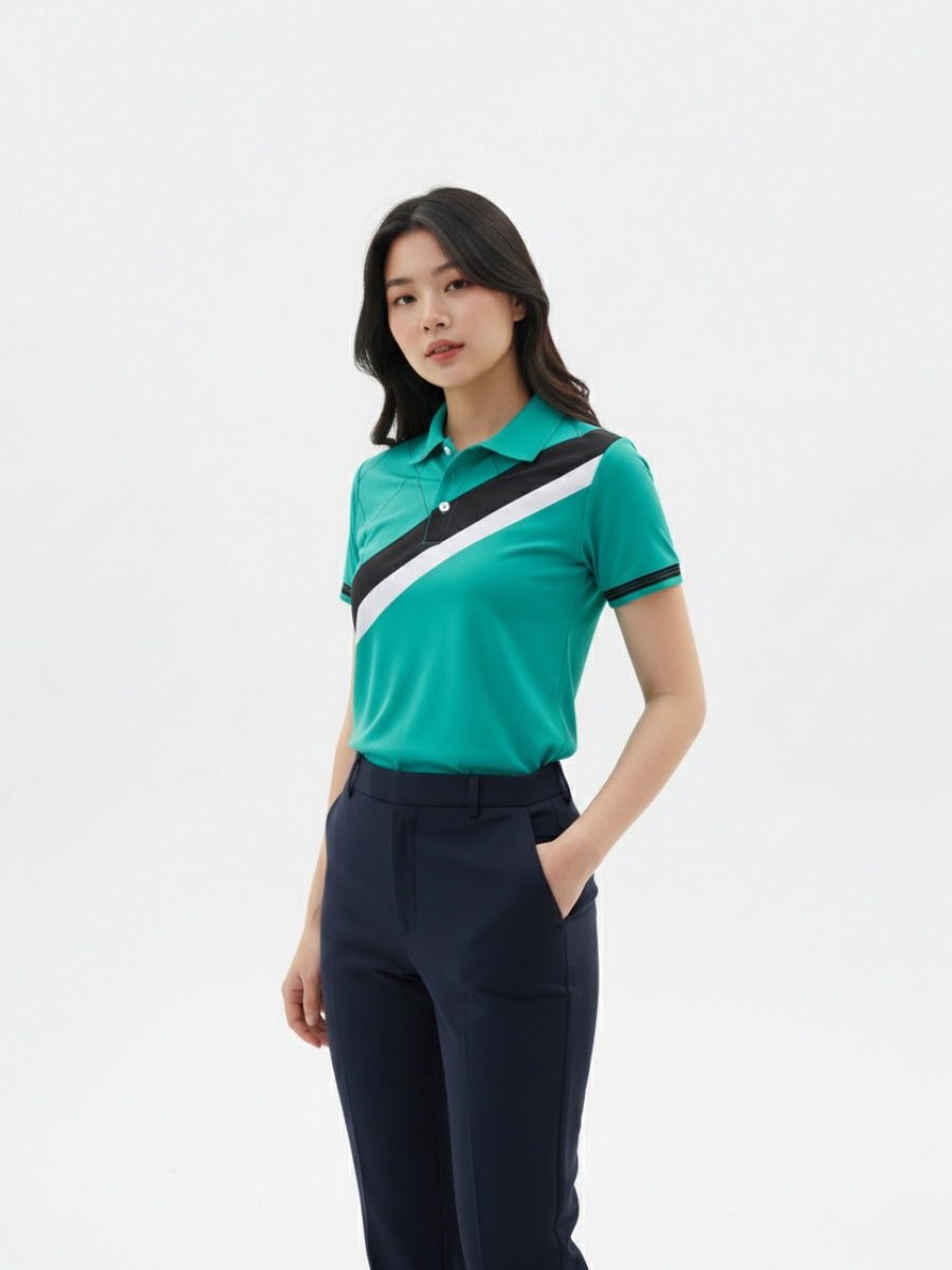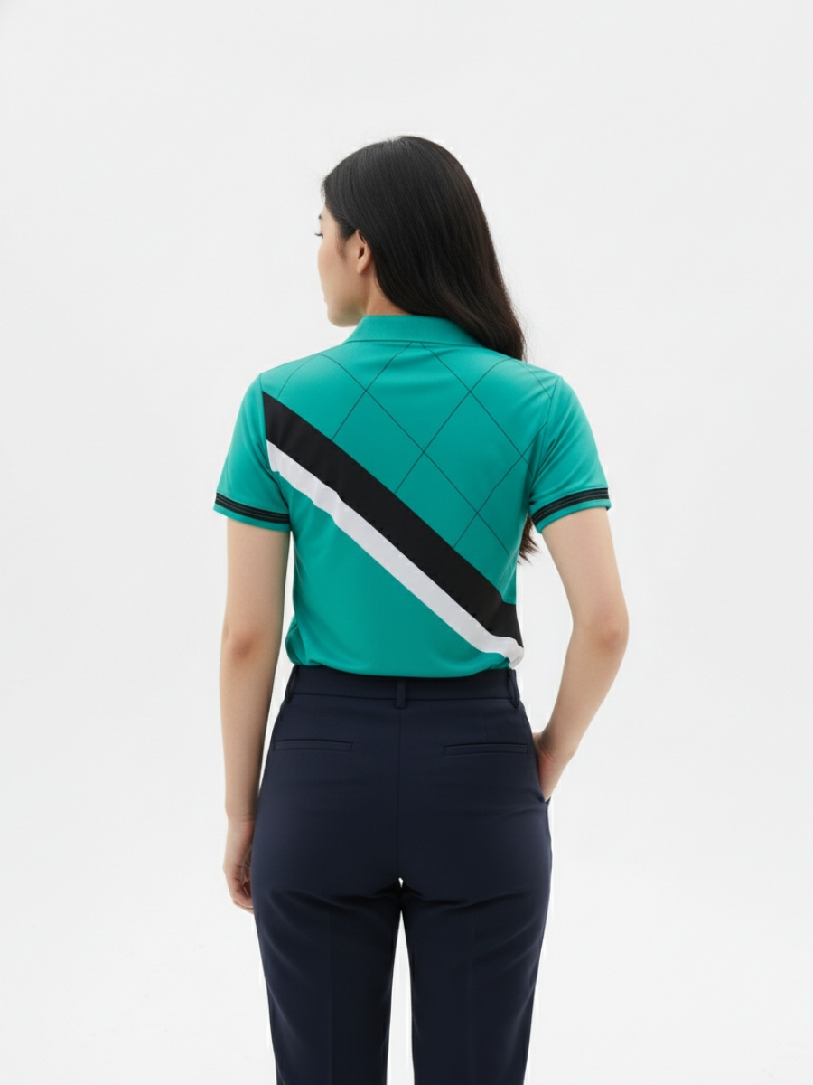 Áo đồng phục team building xanh dạ quang phối sọc đen trắng – 18