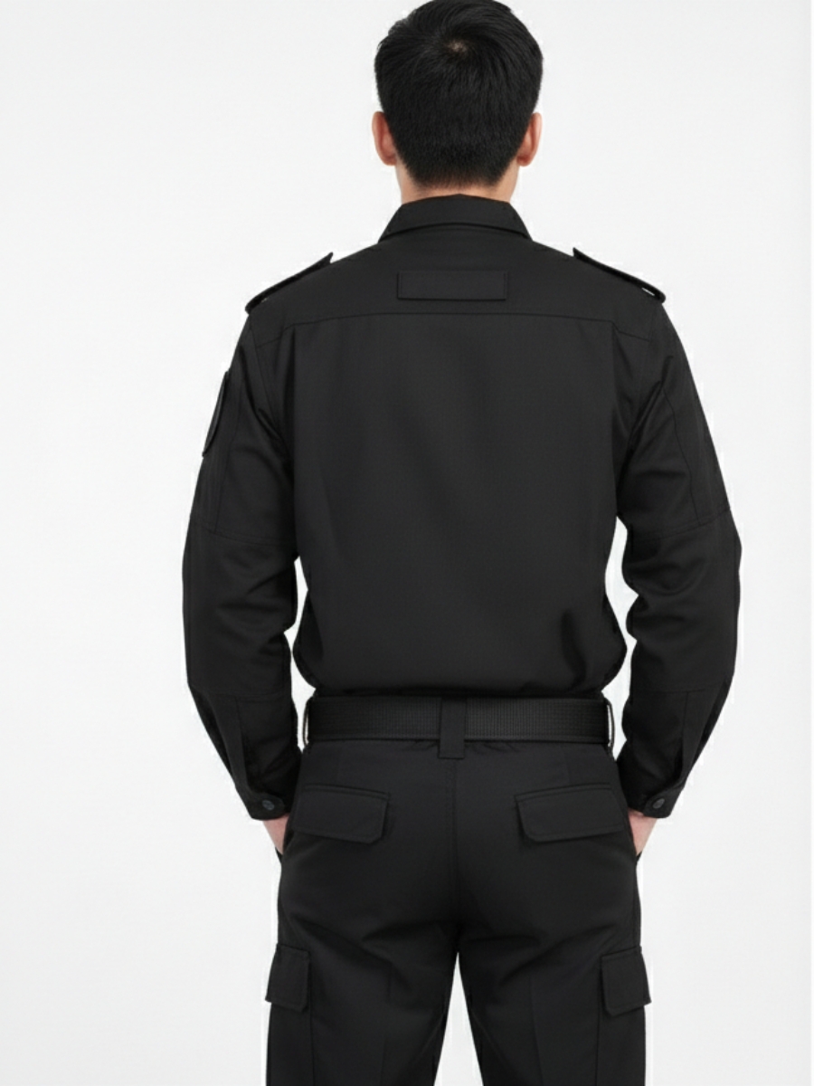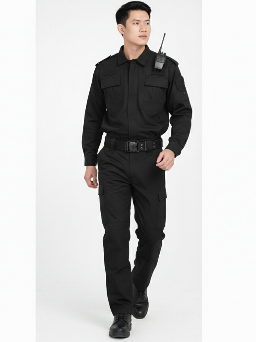 Màu đen của đồng phục bảo vệ 11 không chỉ mang lại vẻ ngoài mạnh mẽ và uy nghiêm mà còn dễ dàng phối hợp với các phụ kiện khác. Màu sắc này cũng giúp che giấu các vết bẩn nhỏ, giữ cho đồng phục luôn trông mới mẻ và sạch sẽ.