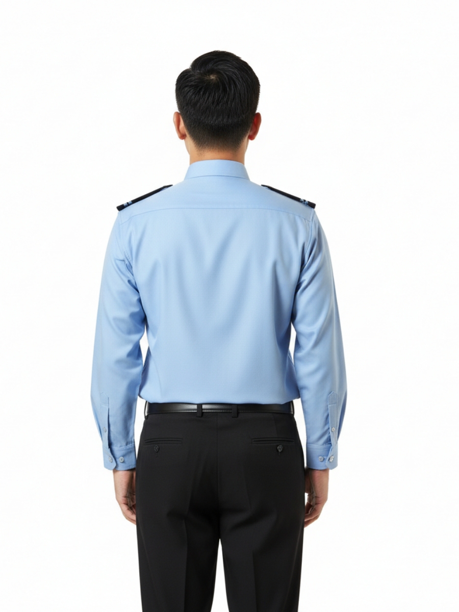 Màu sắc của áo đồng phục bảo vệ là sự kết hợp hoàn hảo giữa màu xanh dương nhạt của áo và màu đen của quần. Sự phối hợp này không chỉ tạo cảm giác dễ chịu cho người nhìn mà còn phù hợp với nhiều môi trường làm việc khác nhau. Màu sắc trang nhã giúp đồng phục dễ dàng phối hợp với các phụ kiện khác như mũ bảo vệ, giày, và thắt lưng.