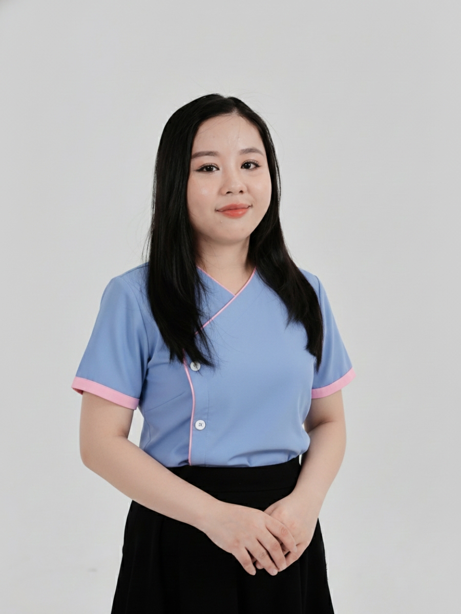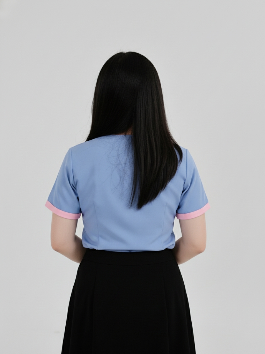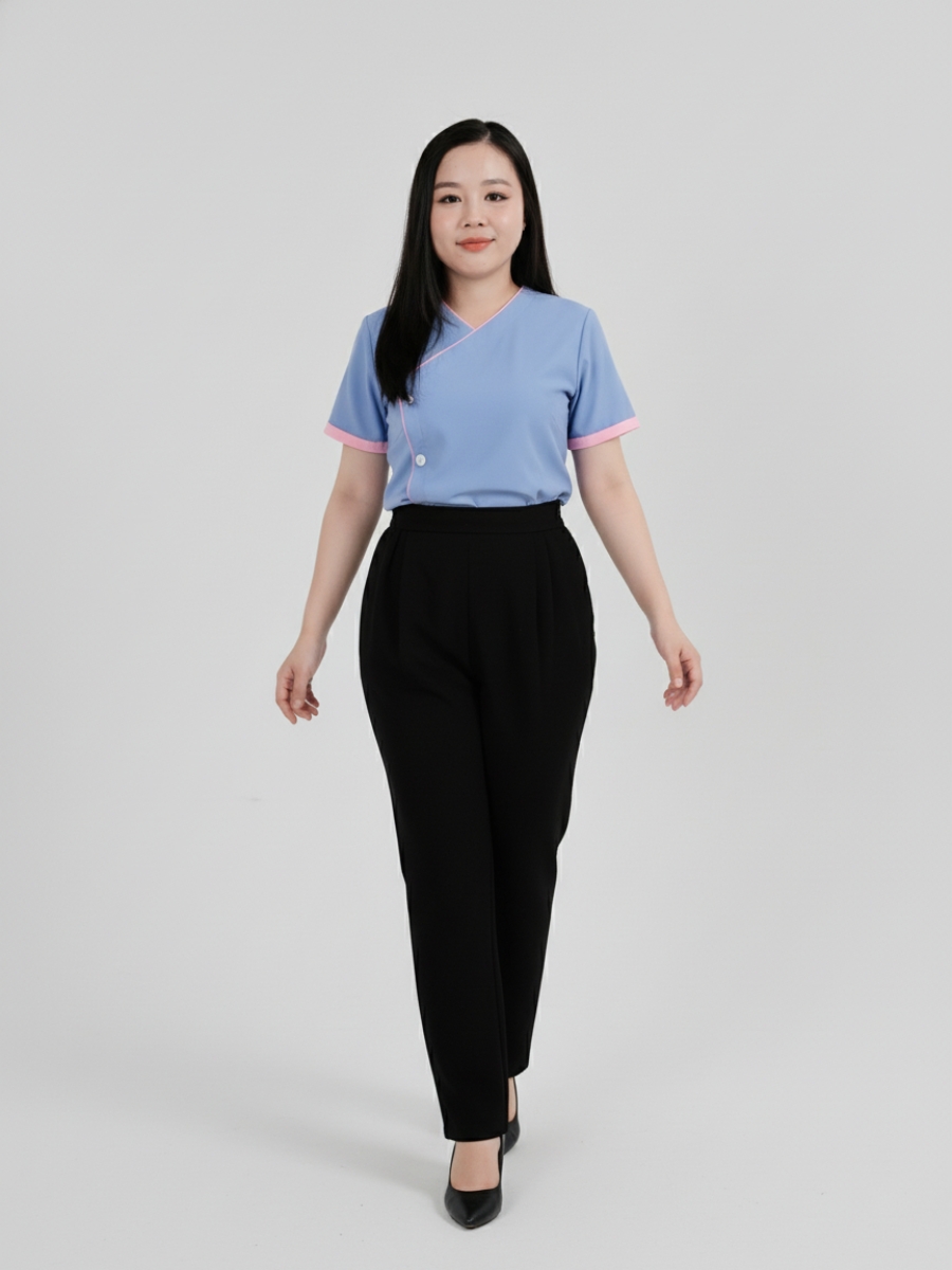 Đồng phục nhân viên spa xanh nhạt phối viền hồng – 04