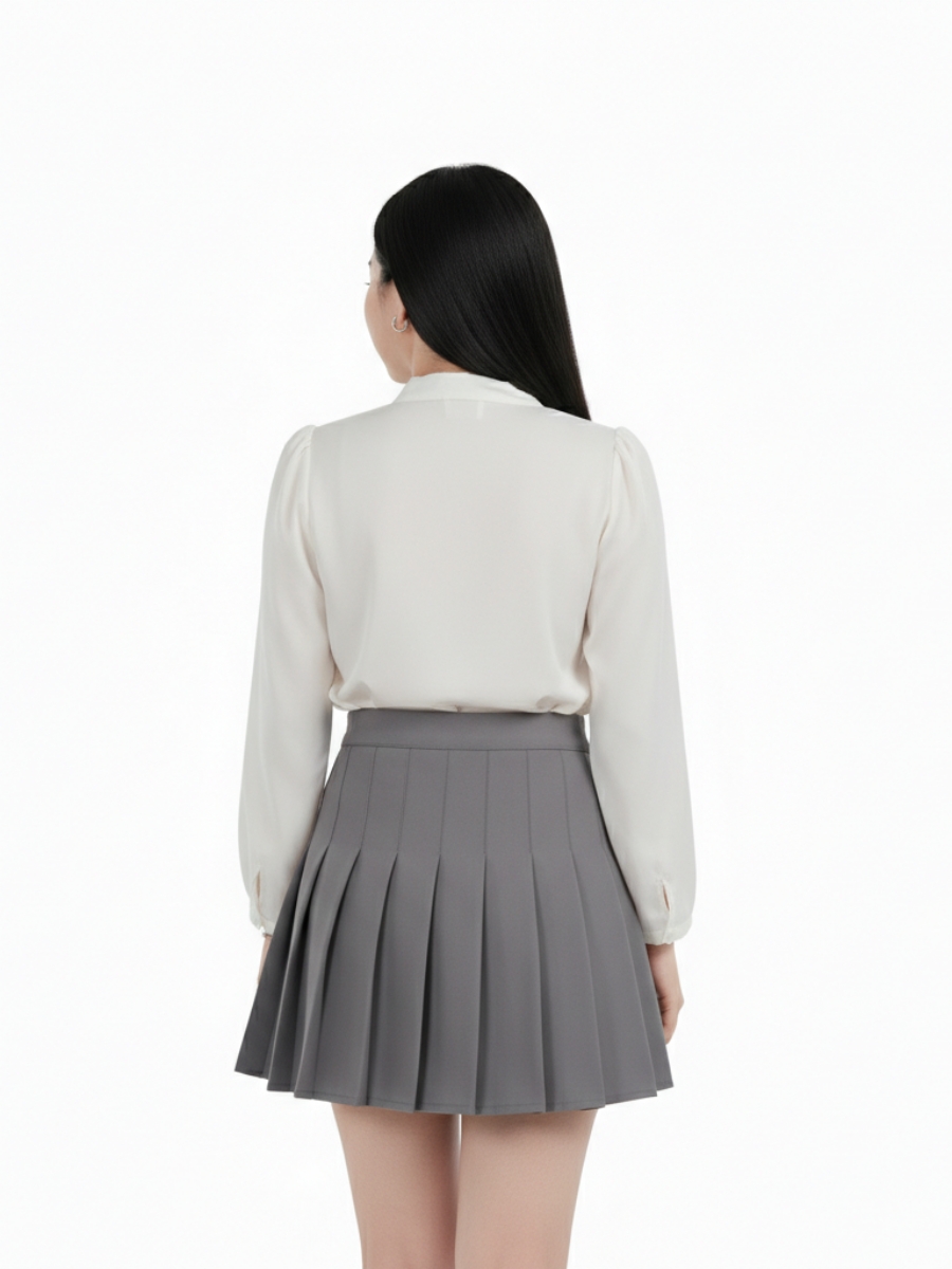 Với thiết kế xếp li tinh tế, váy đồng phục mang lại vẻ đẹp nữ tính và thanh lịch. Màu xám đậm trang nhã, dễ dàng phối hợp với nhiều loại áo và phụ kiện khác nhau, tạo nên nhiều phong cách thời trang đa dạng. Kiểu dáng váy ôm vừa vặn, tôn lên đường cong cơ thể mà vẫn giữ được sự thoải mái khi di chuyển.